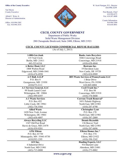 List Of Cecil County Licensed Commercial Refuse Haulers