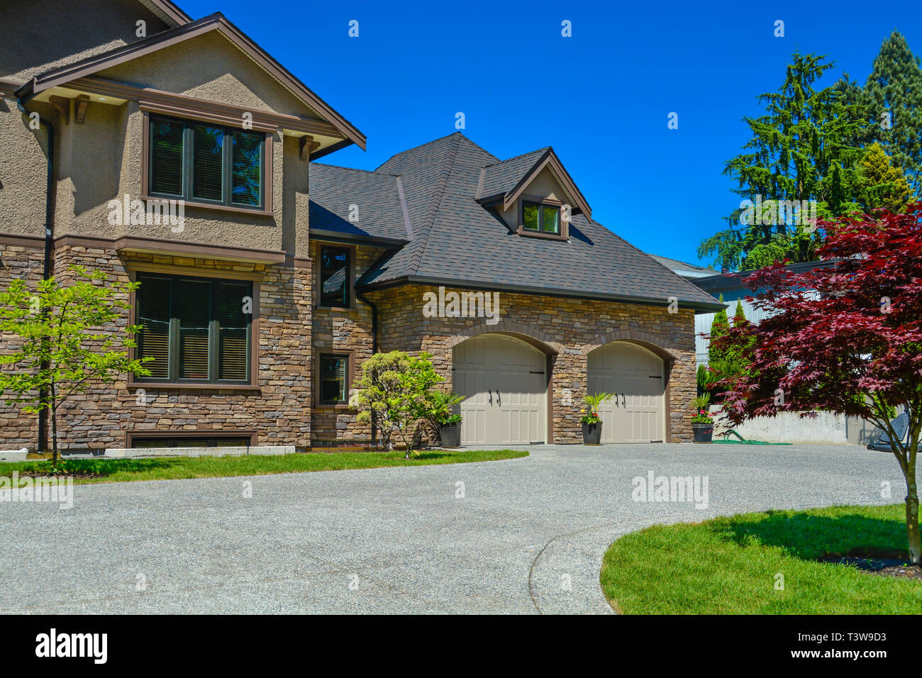 House Exterior With Garage And Driveway Beautiful Front Yard Stock Photo Picture And Royalty Free Image Image 32320449