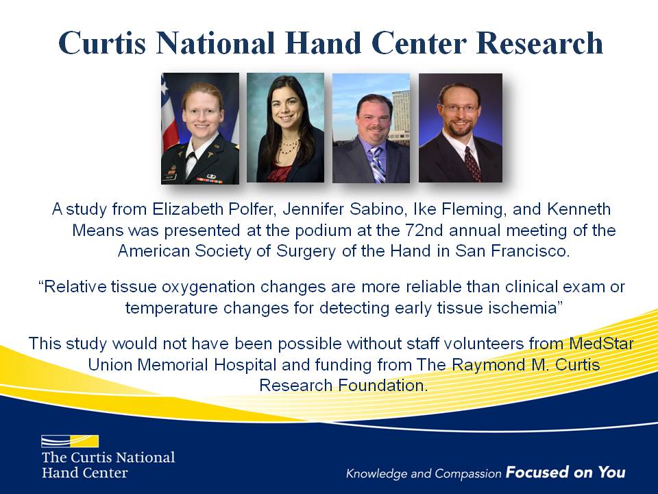 Curtis hand center. They treat hand wrist elbow arm shoulder and upper extremity problems. The Curtis National Hand Center has been designated by the United States Congress as the only National Center for the Treatment of the Hand and Upper Extremities. The Curtis National Hand Center The Curtis National Hand Center is home to the countrys largest collection of hand surgeons and specially trained hand therapists.